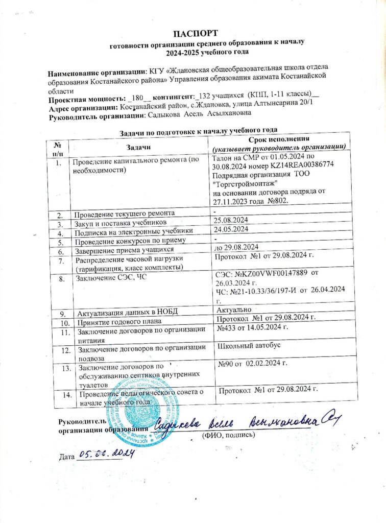 Самооценка Ждановская ОШ 2024-2025 уч.год